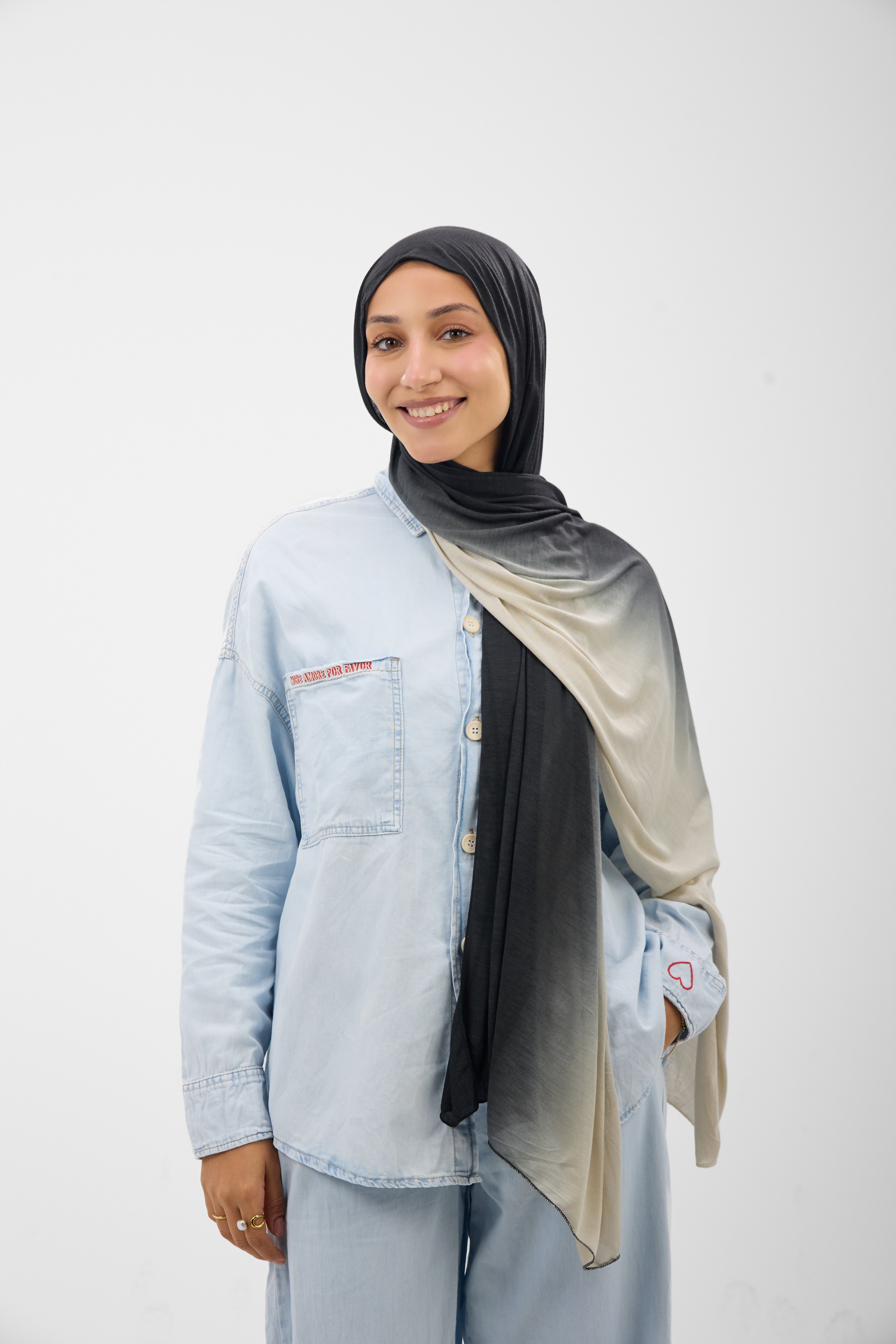 Wrap yourself in the mesmerizing beauty of our Lycra Ombré Scarf, where color flows like a gentle sunset across premium fabric. This luxurious piece transitions seamlessly through rich, harmonious hues, creating an enchanting gradient that catches light with every movement. Crafted from soft, breathable Lycra, it drapes elegantly while maintaining its shape, offering both comfort and sophistication. Perfect for elevating any outfit, this scarf becomes more than an accessory—it's a wearable work of art that expresses your unique style and celebrates the poetry of color.